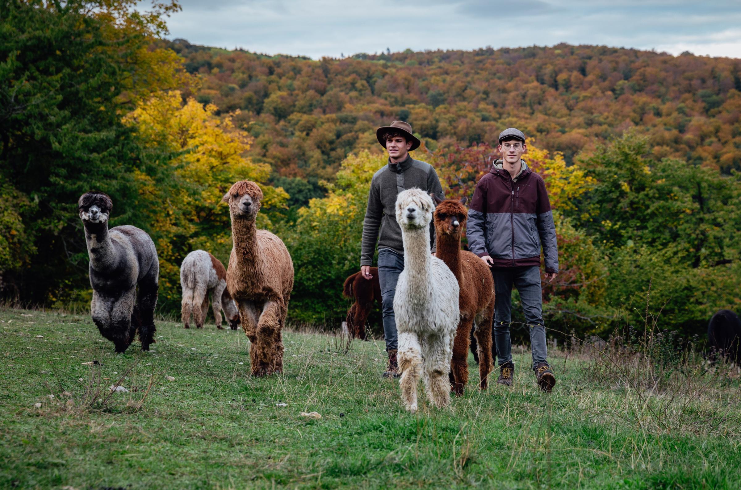 Sie hatten gute Jobs, fanden das aber nicht erfüllend. Um sich einen gemeinsamen Traum zu verwirklichen, sparten sie ihr Ausbildungsgehalt und kauften sieben Alpakas – eine Investition in ihr Unternehmen und die Zukunft als Macher der „Rhönmomente“. Viele rieten davon ab, manche lachten sogar über die Idee. Abgebracht von ihrem Pfad hat das die innovativen Brüder nicht. Inzwischen haben sie 26 Alpakas, 11 Angestellte, einen Laden und holen Jahr für Jahr Tausende Besucher in die Rhön.