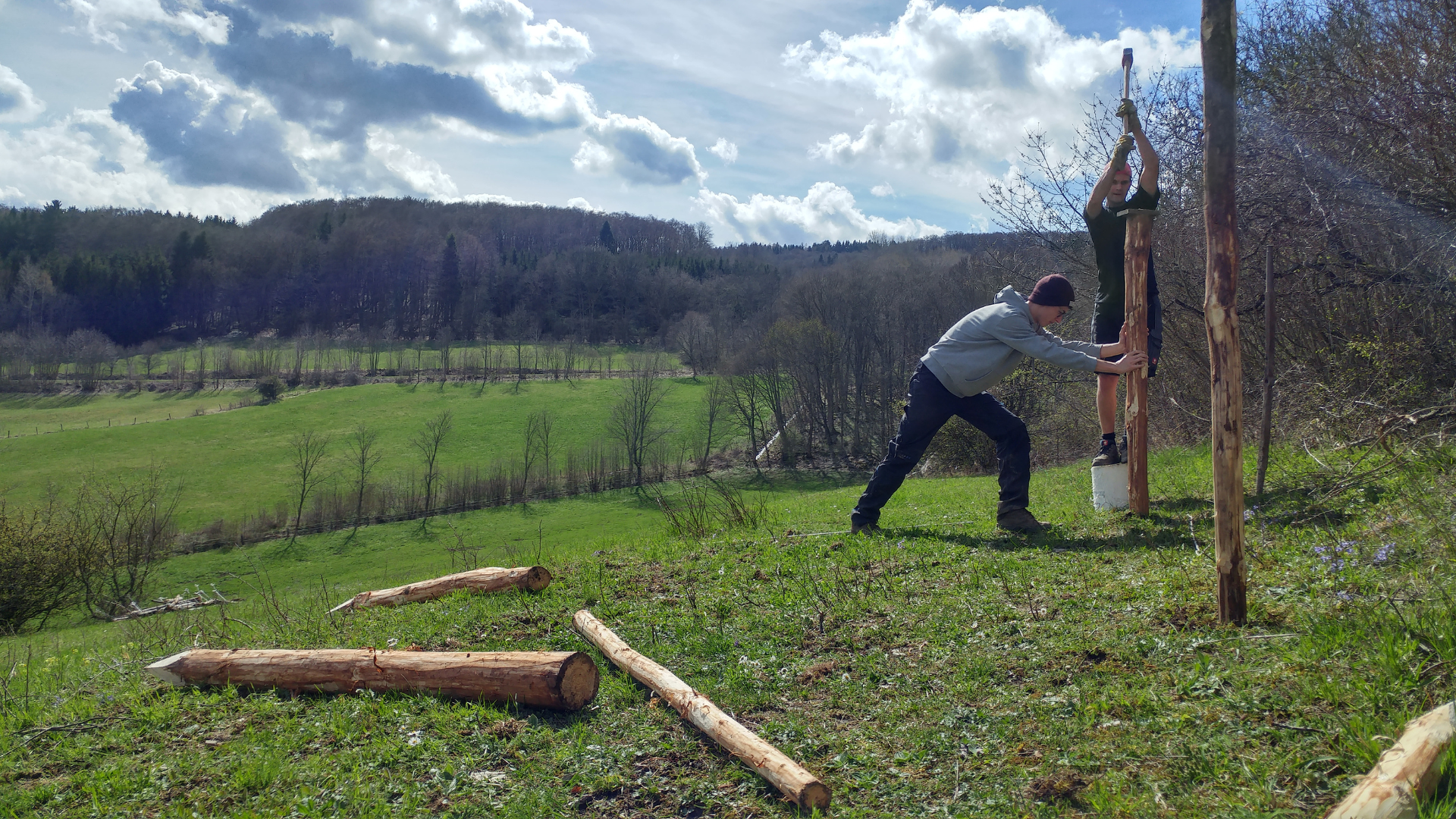 Durch unsere Liebe zur Rhön haben wir viel draußen in der Natur unternommen, sind mit den Mofas umhergefahren und haben Baumhäuser gebaut. So auch unser Baumhaus auf der damaligen Koppel unseres Ur-Großvaters. Jeden Tag nach der Schule bzw. Ausbildung sind wir dort hingefahren. Irgendwann saßen wir dann da, haben in die Ferne geschaut, Bier getrunken und philosophierten über das Leben und sprachen darüber, wie geil es wäre, morgens aufzustehen und einfach das zu machen, auf was man Lust hat. Eine schöne Vorstellung. Doch wie sollte man so etwas finden? Wie weiß man denn, was einem sein ganzes Leben Spaß macht? Flo scherzte dann herum und sagte: „Naja, dann kaufen wir uns halt einfach ein paar Alpakas – so wie die aussehen, muss man einfach Spaß haben.“
